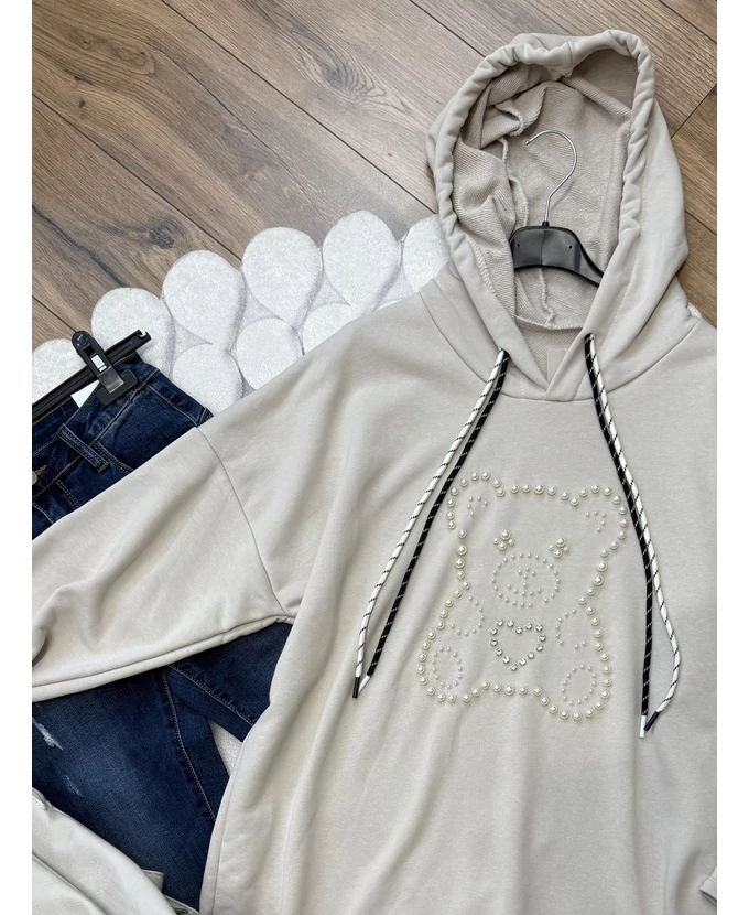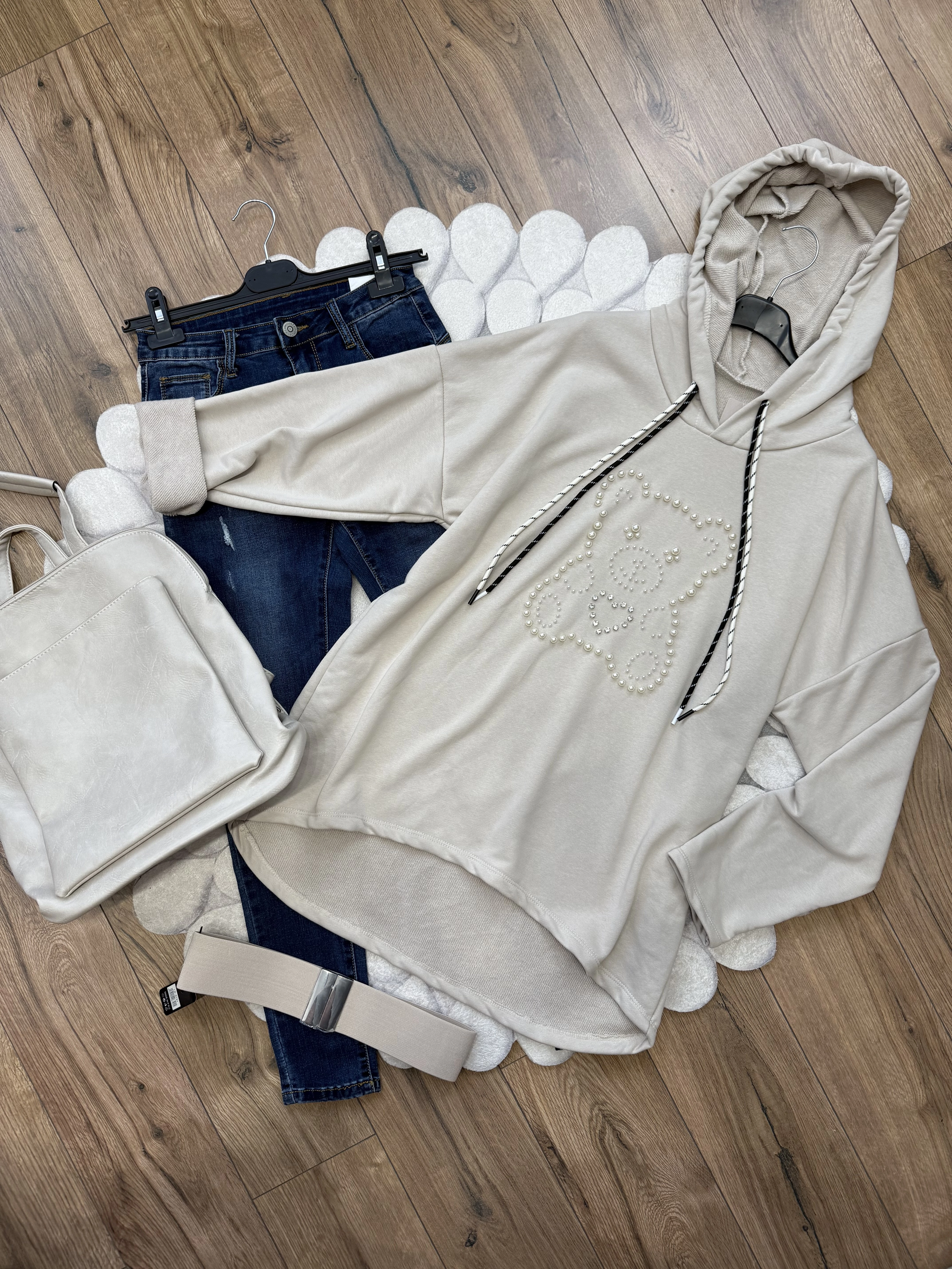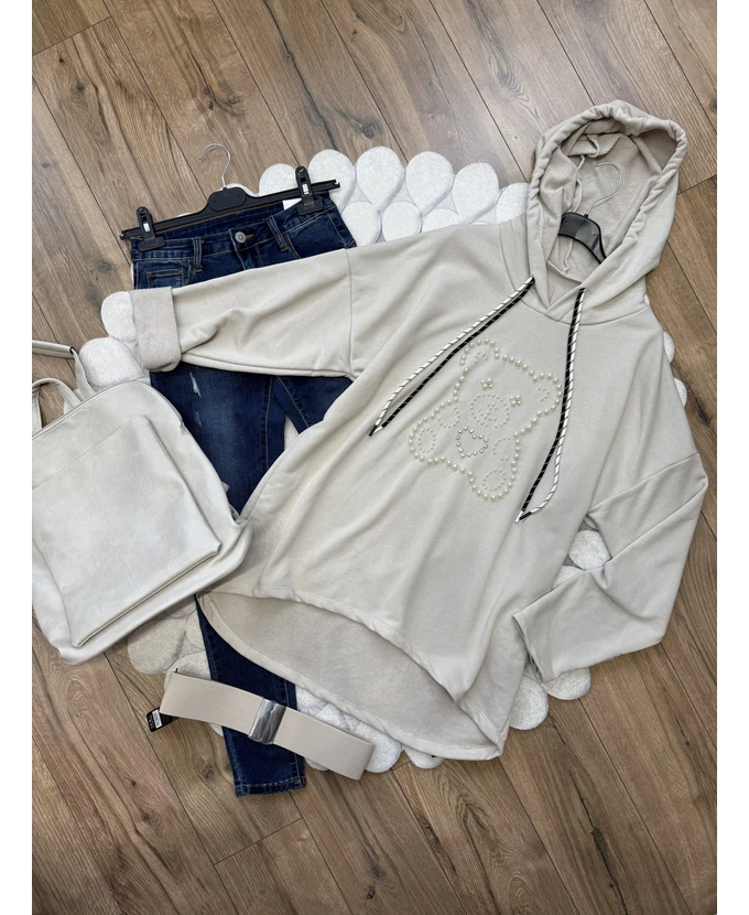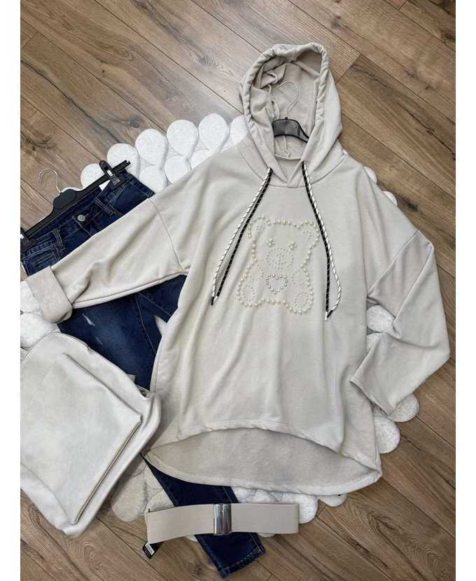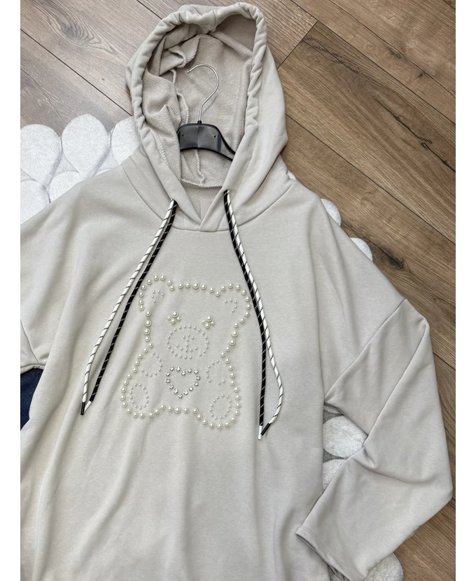 Különleges gyöngyös díszítése egy macit ábrázol az elején.