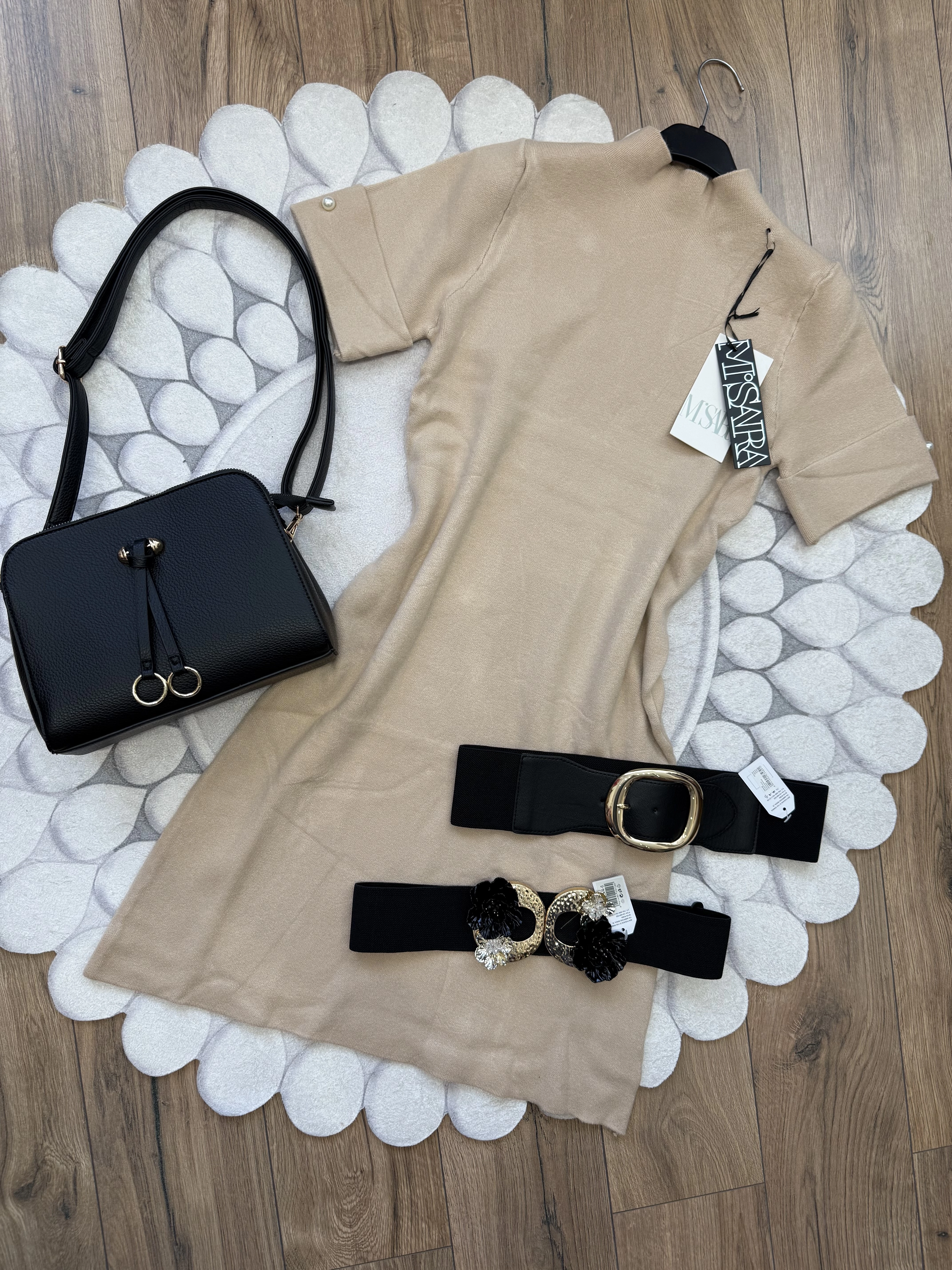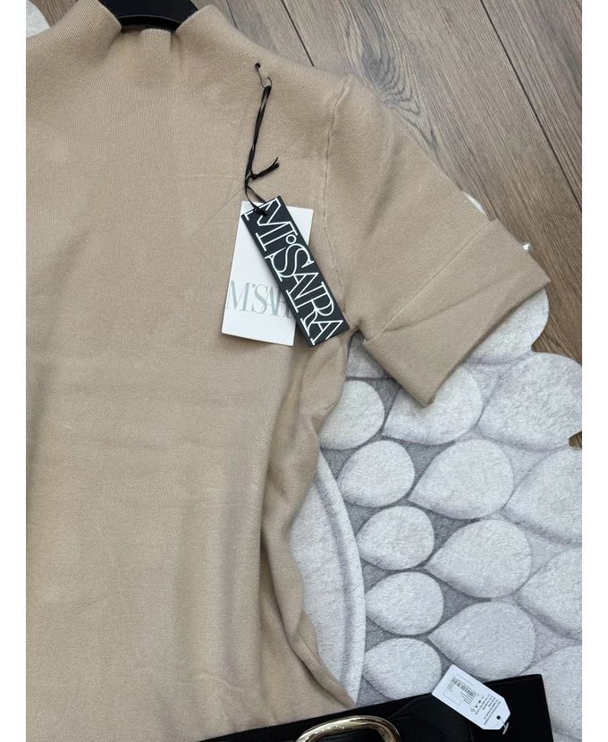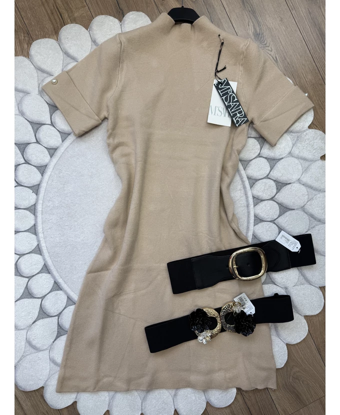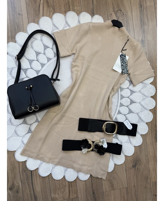 Elegáns, kötött ruha puha anyagból, kényelmes viseletet biztosít.