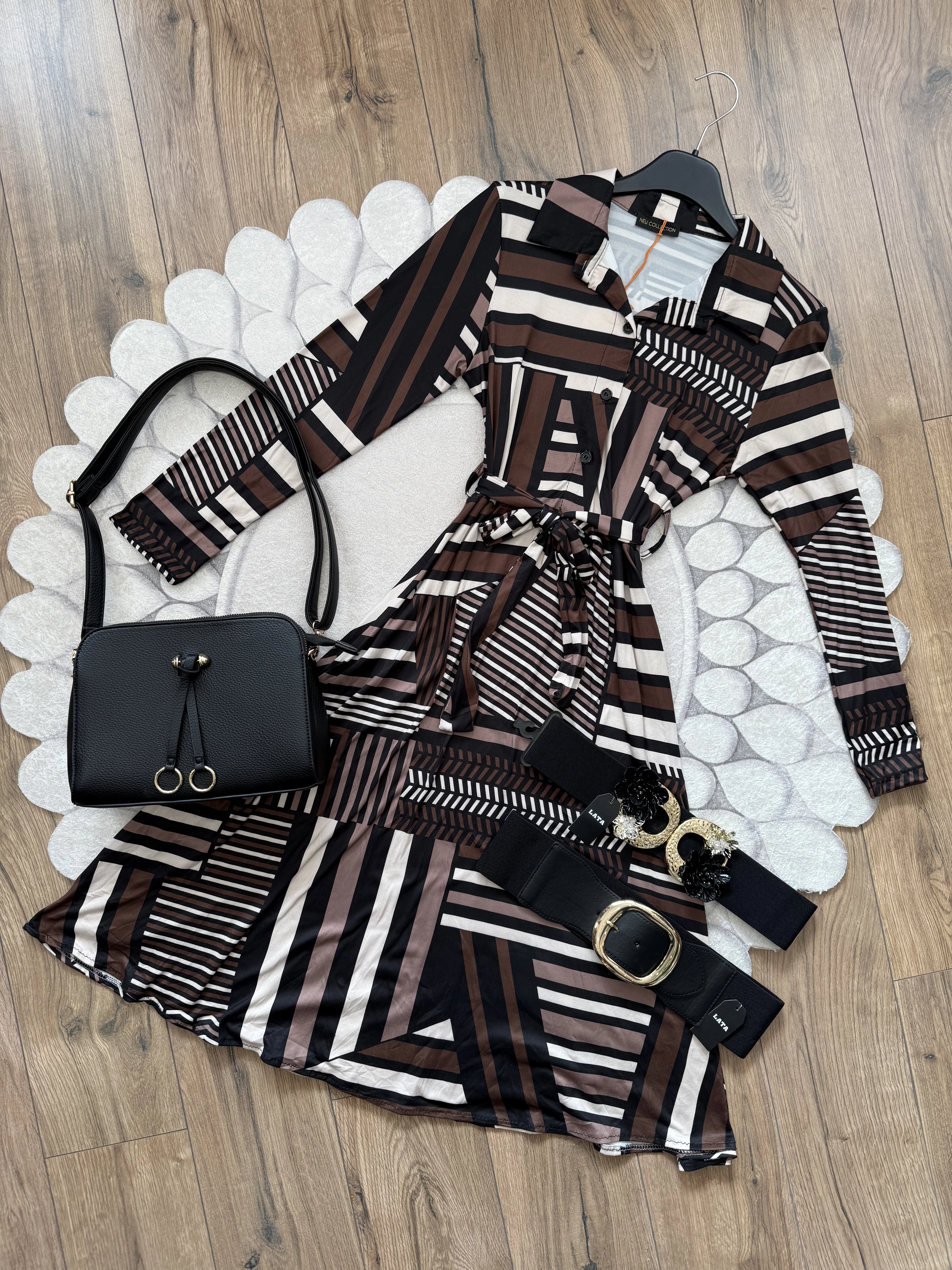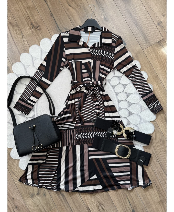 Rugalmas anyagú, stílusos mintás ruha, egész nap kényelmes viselet.