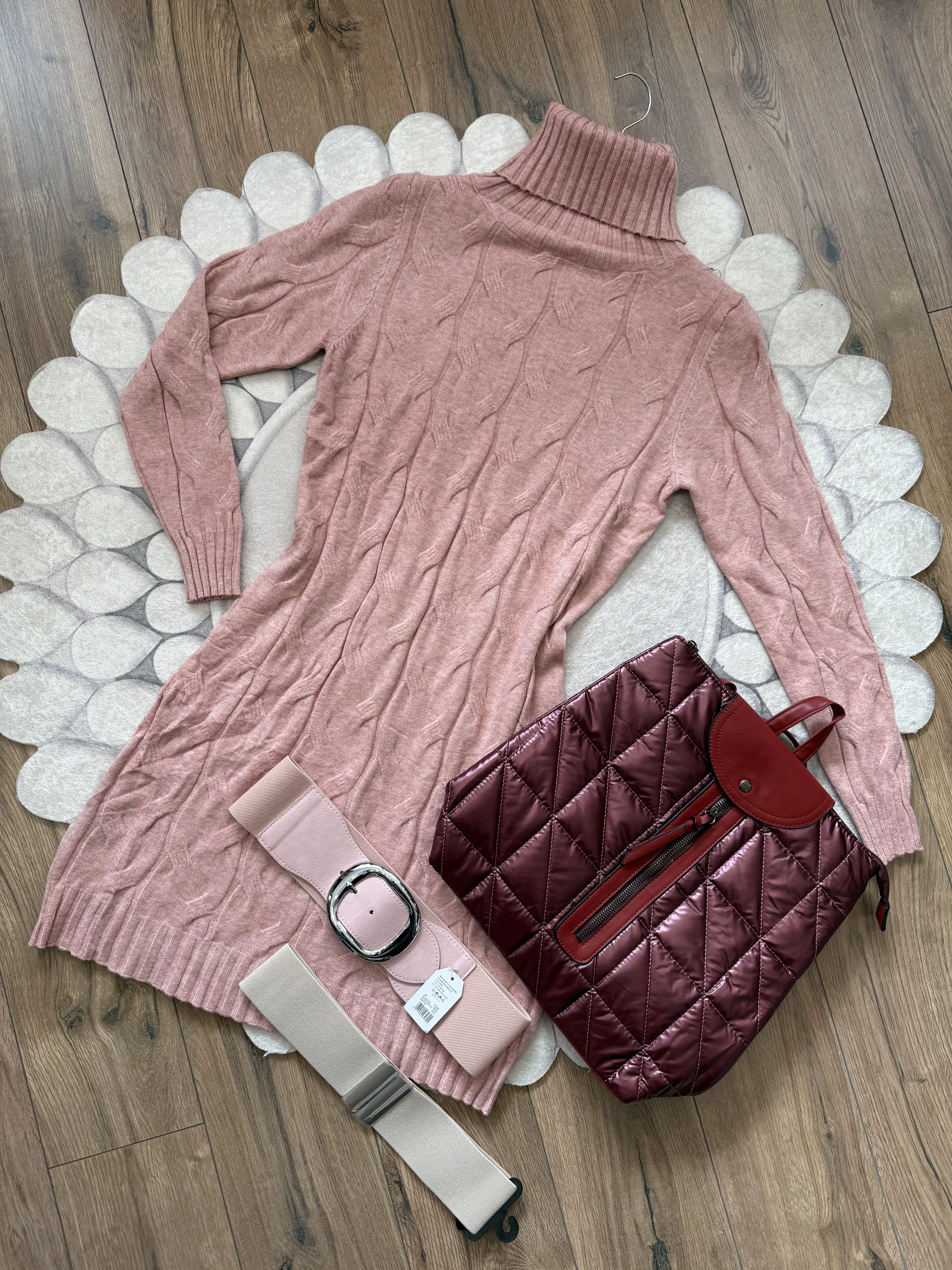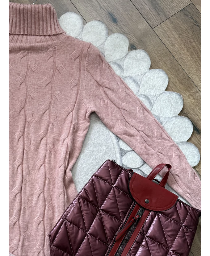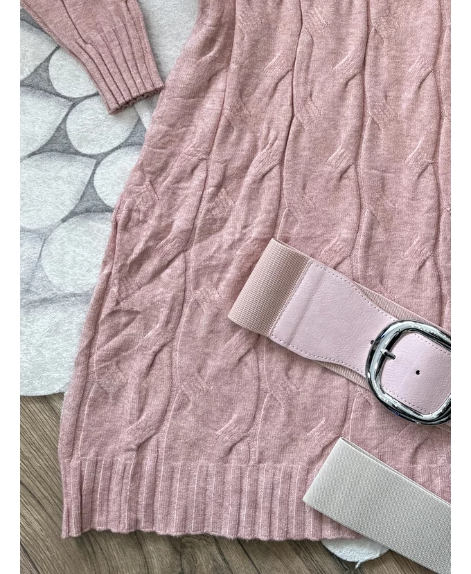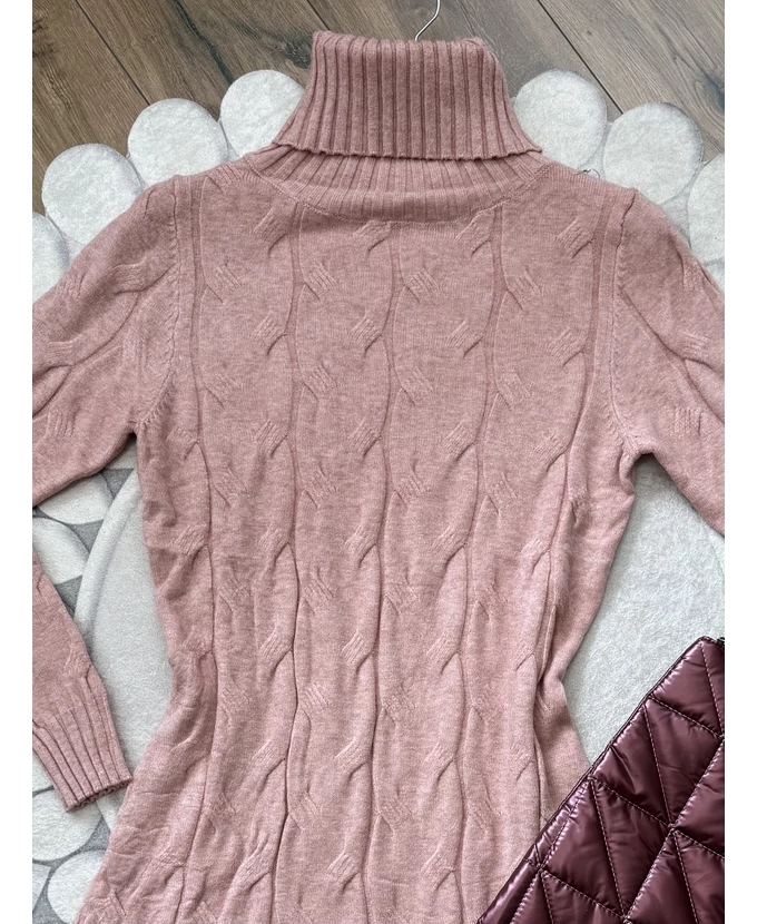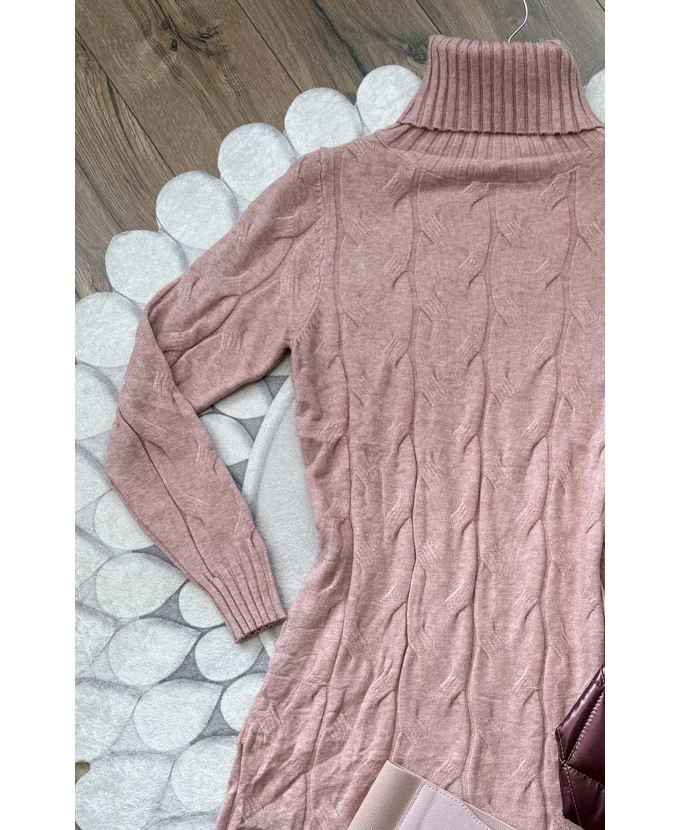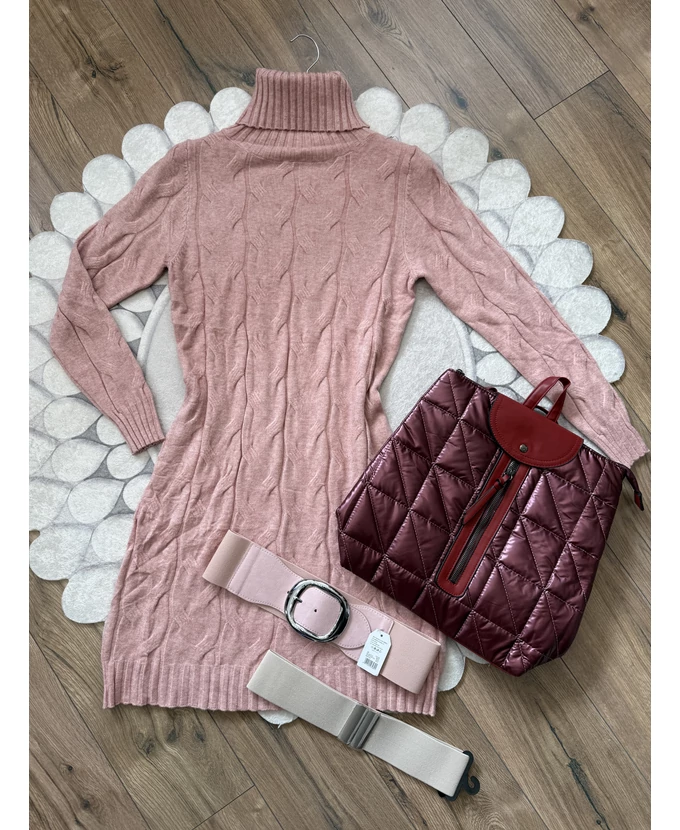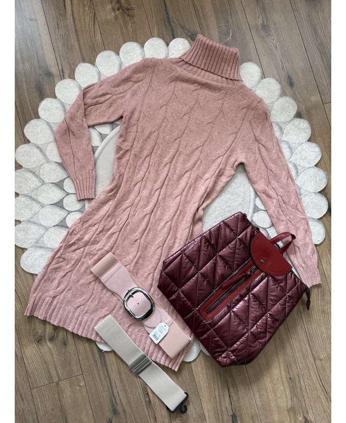Puha tapintású, garbós, nyomott mintás kötött ruha, amely egyszerre kényelmes és nőies.