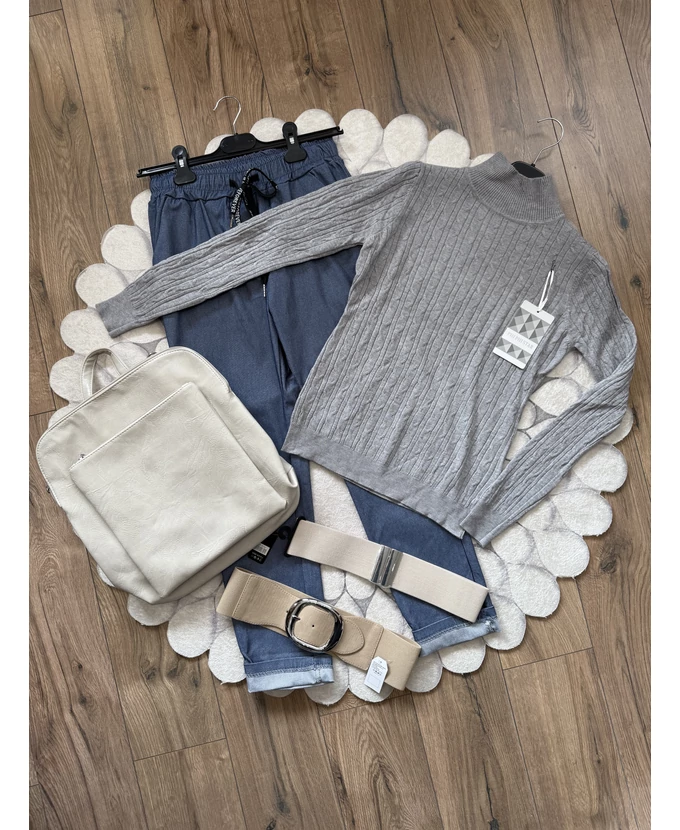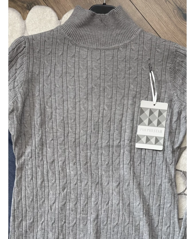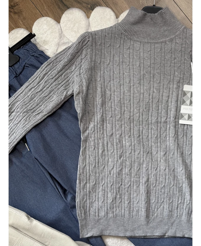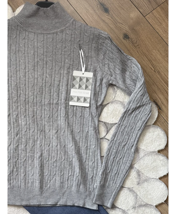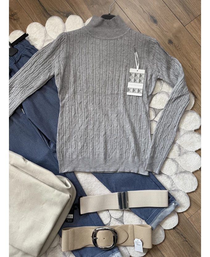 Puha tapintású, félgarbós, nyomott mintás pulóver – kényelmes és stílusos alapdarab a hűvös napokra.