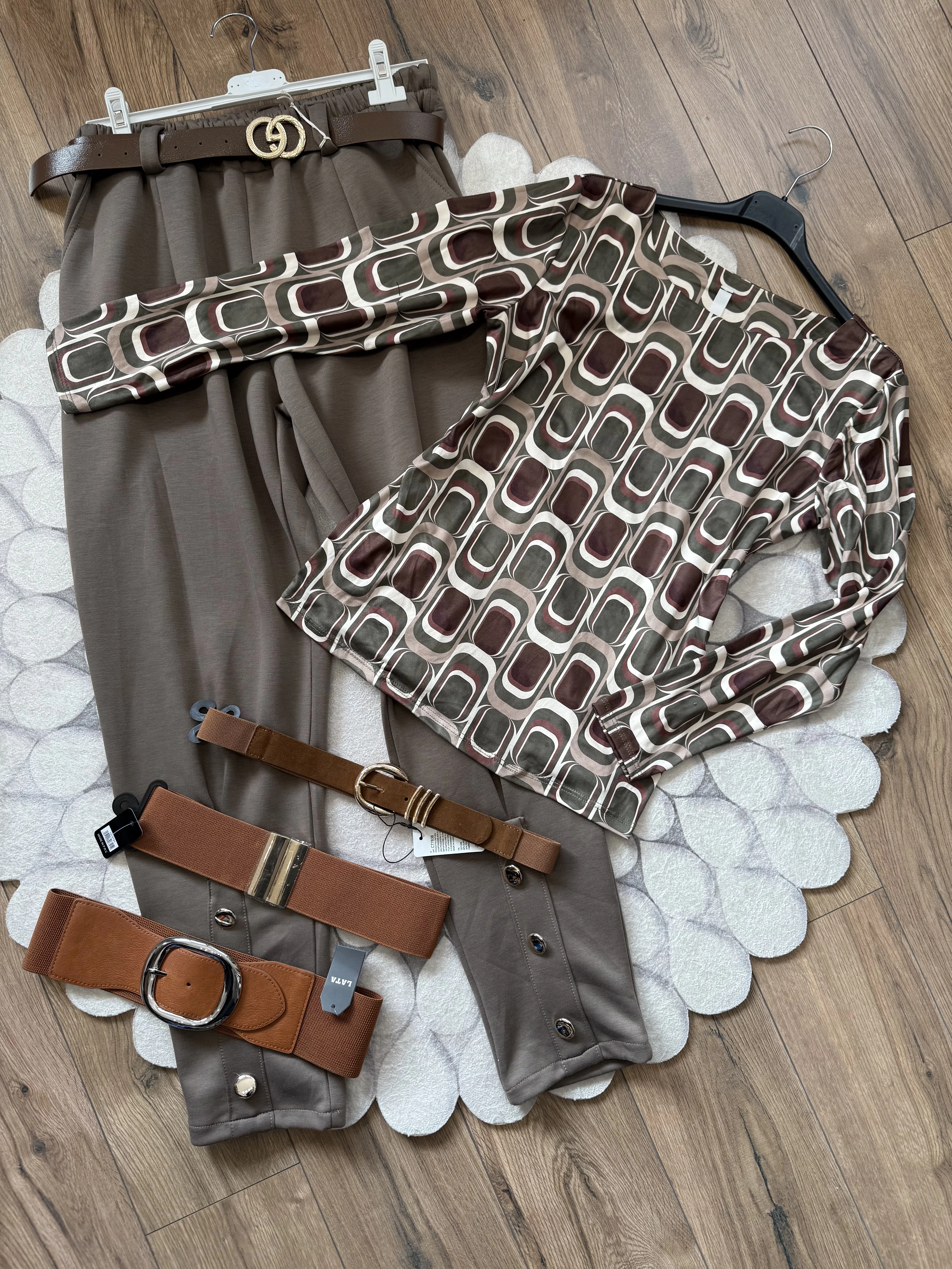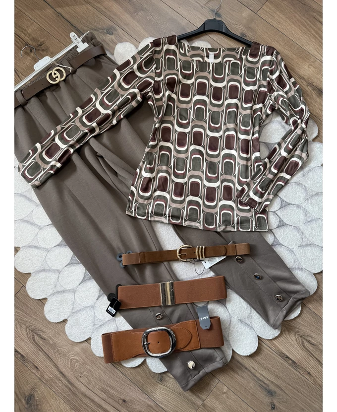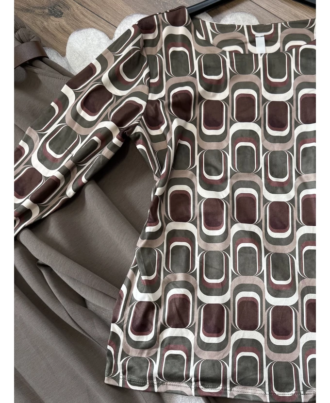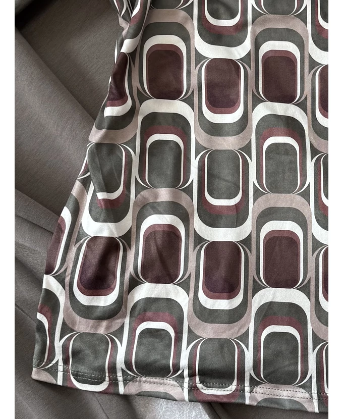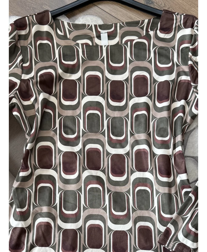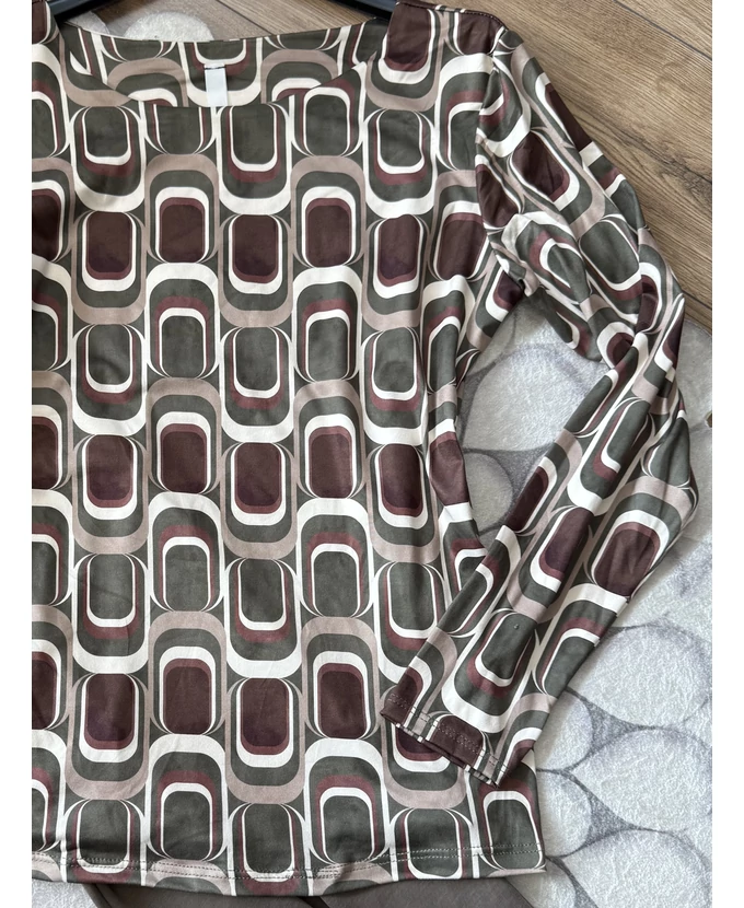 Stílusos, elegáns megjelenésű rugalmas anyagú hosszú ujjú mintás felső.